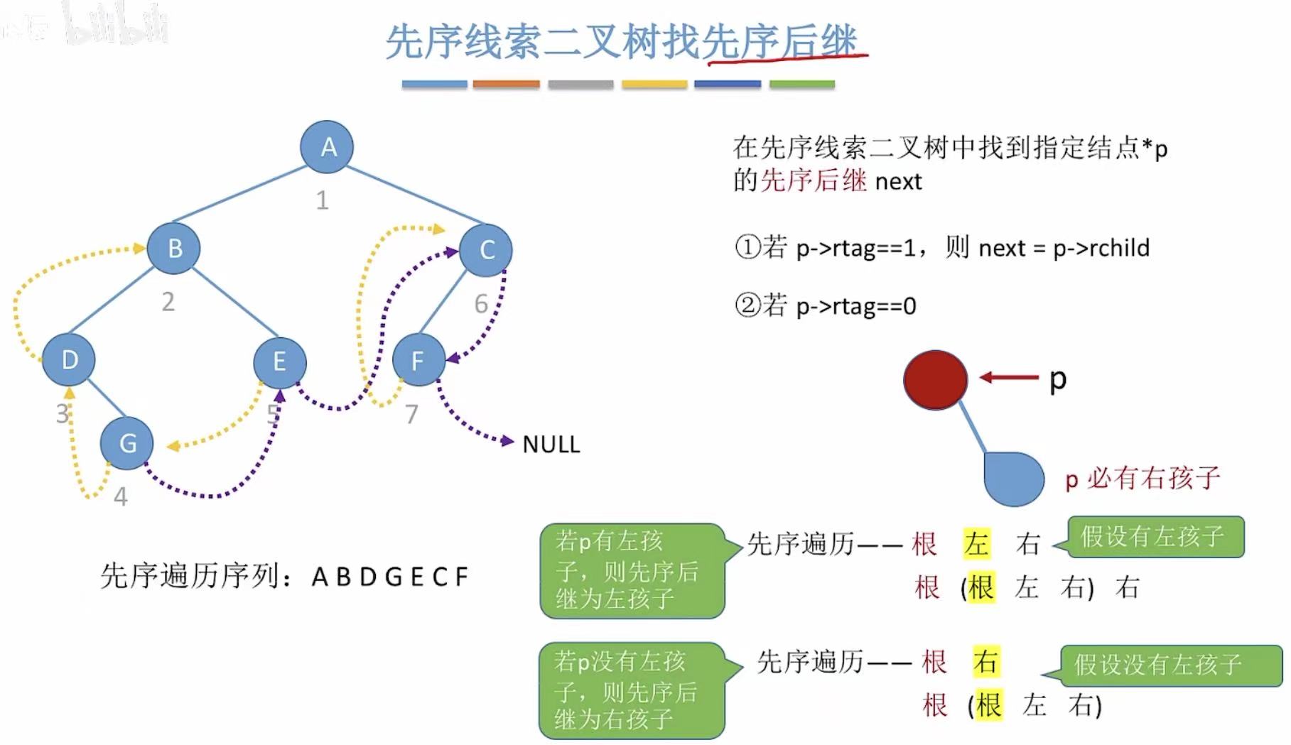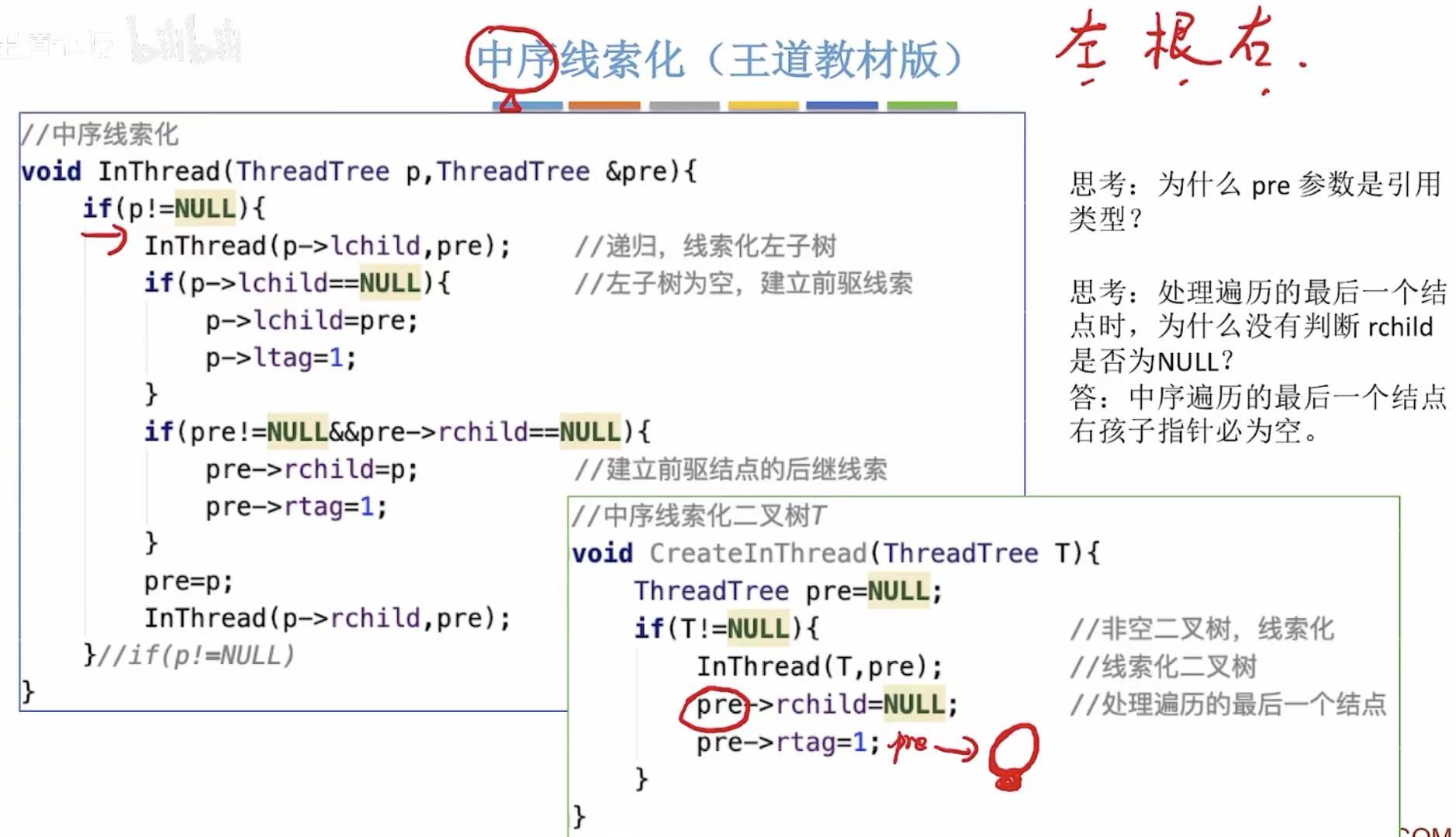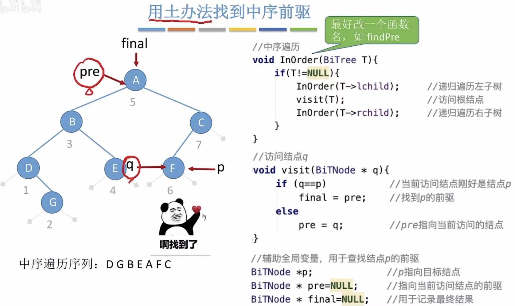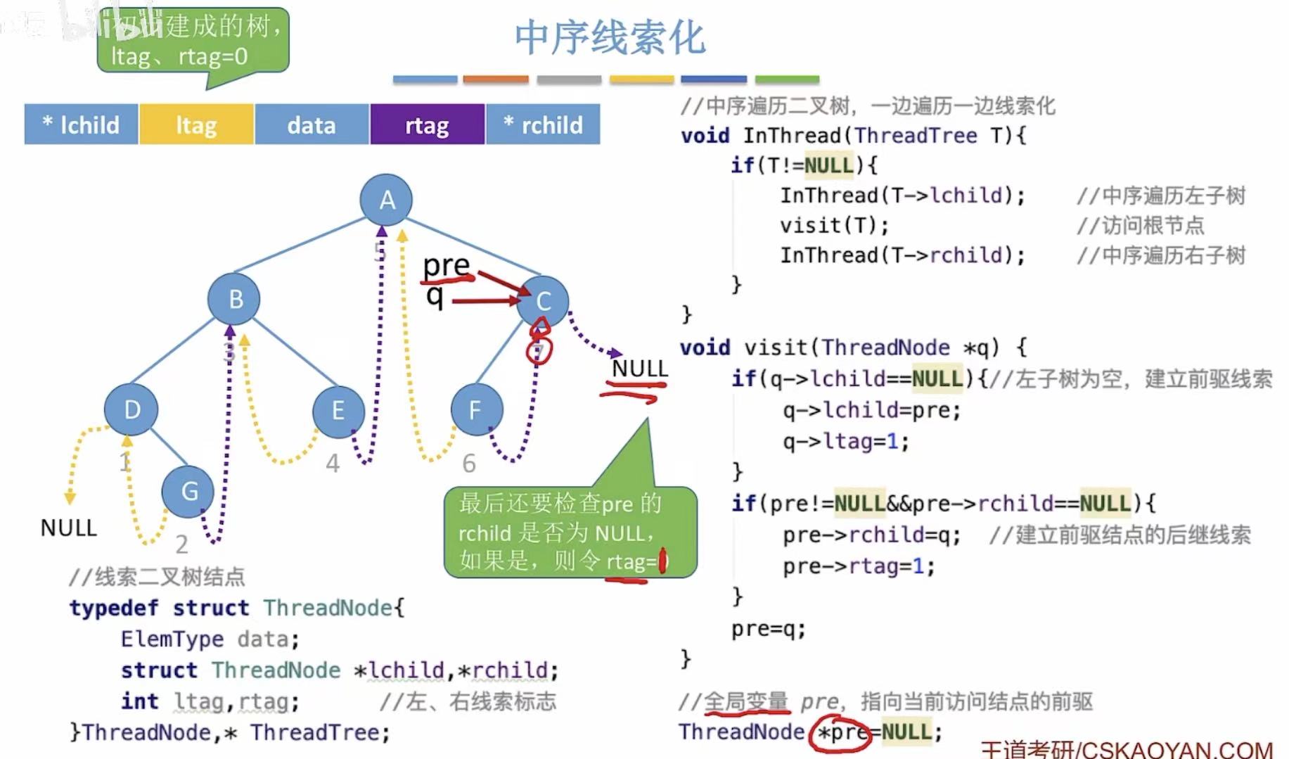 pre->rchild = q; // 将 pre 的右指针指向 q(即 q 是 pre 的后继)