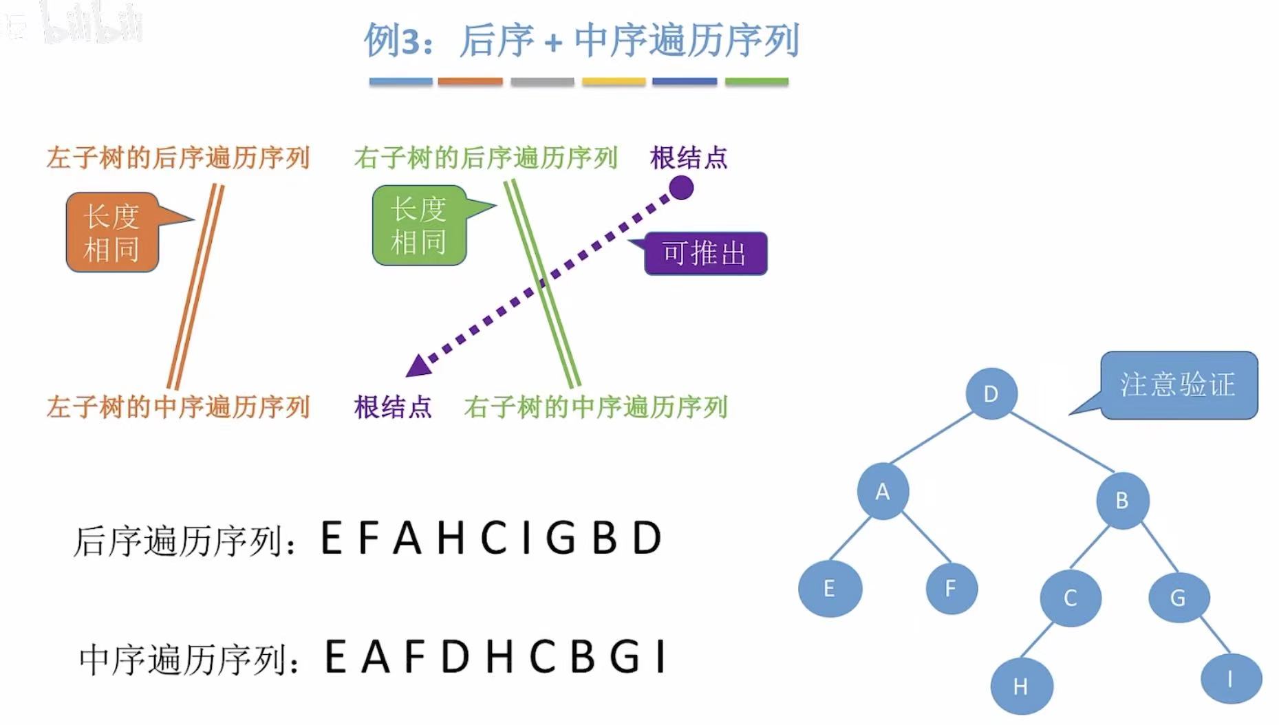 - 中序 :E A F-->E是左子树,F是右子树;HC B GI-->HC是左子树,GI是右子树。