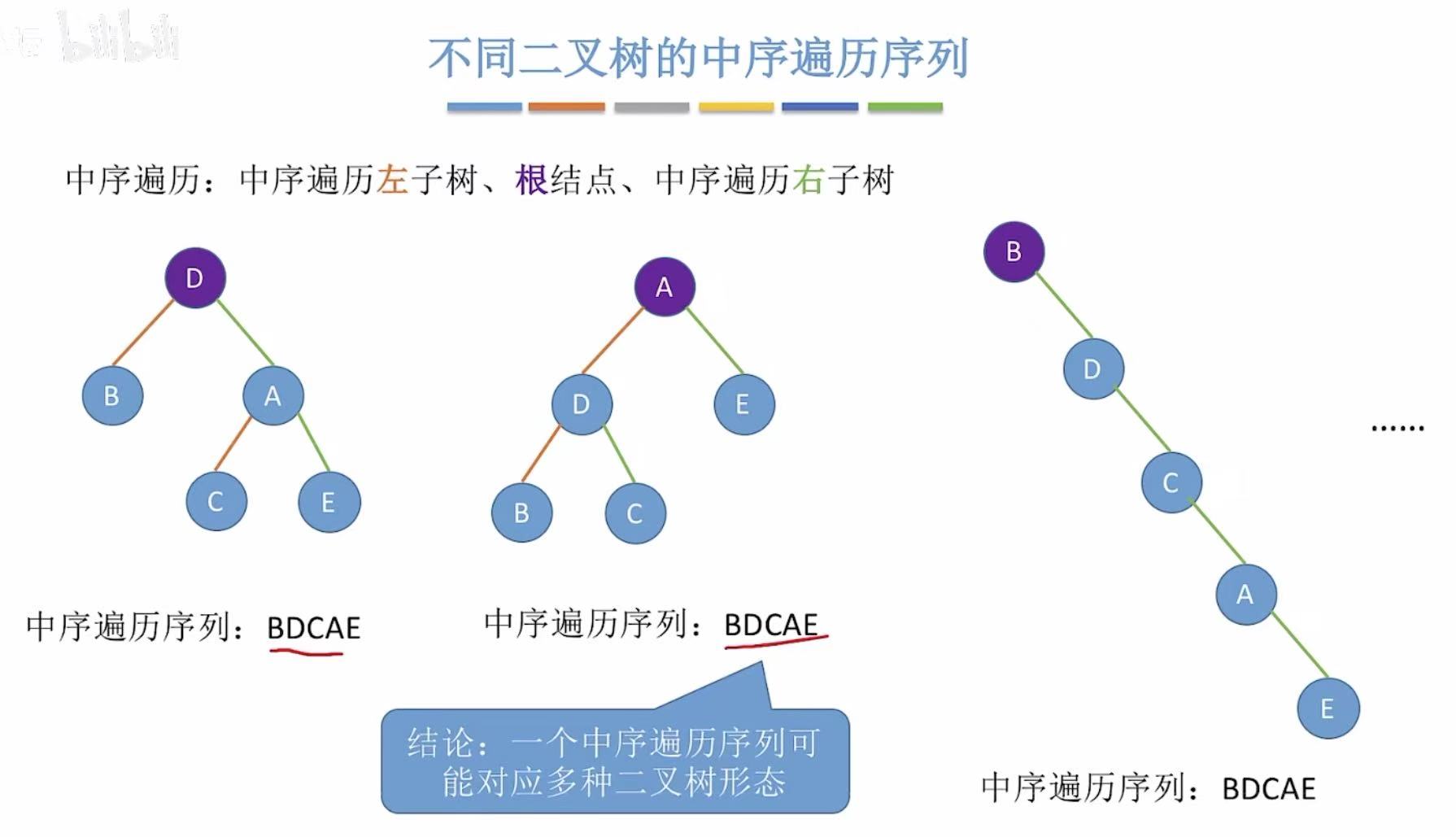 只有一个中序遍历,可以画出很多种不同的二叉树。