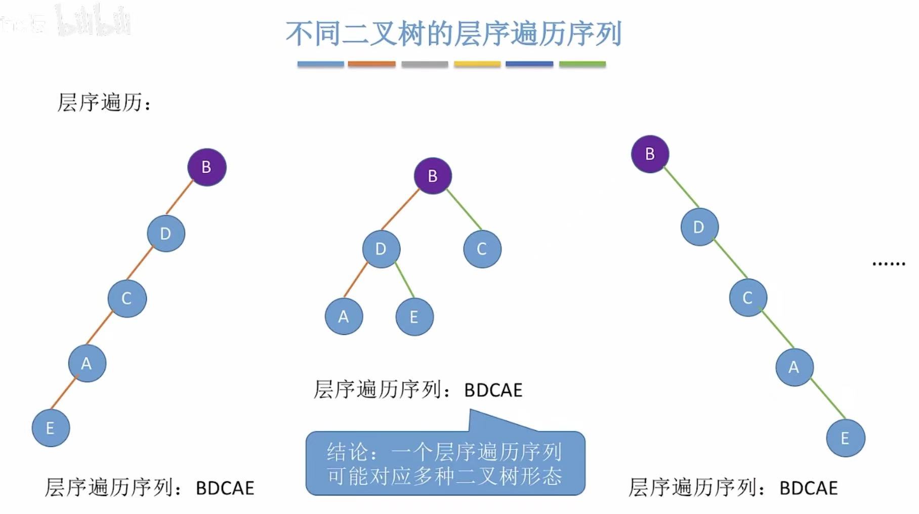 只有一个层序遍历,可以画出很多种不同的二叉树。
