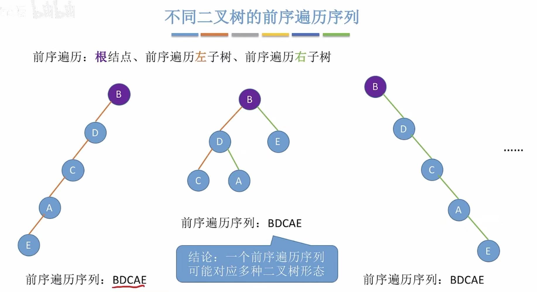 只有一个前序遍历,可以画出很多种不同的二叉树。