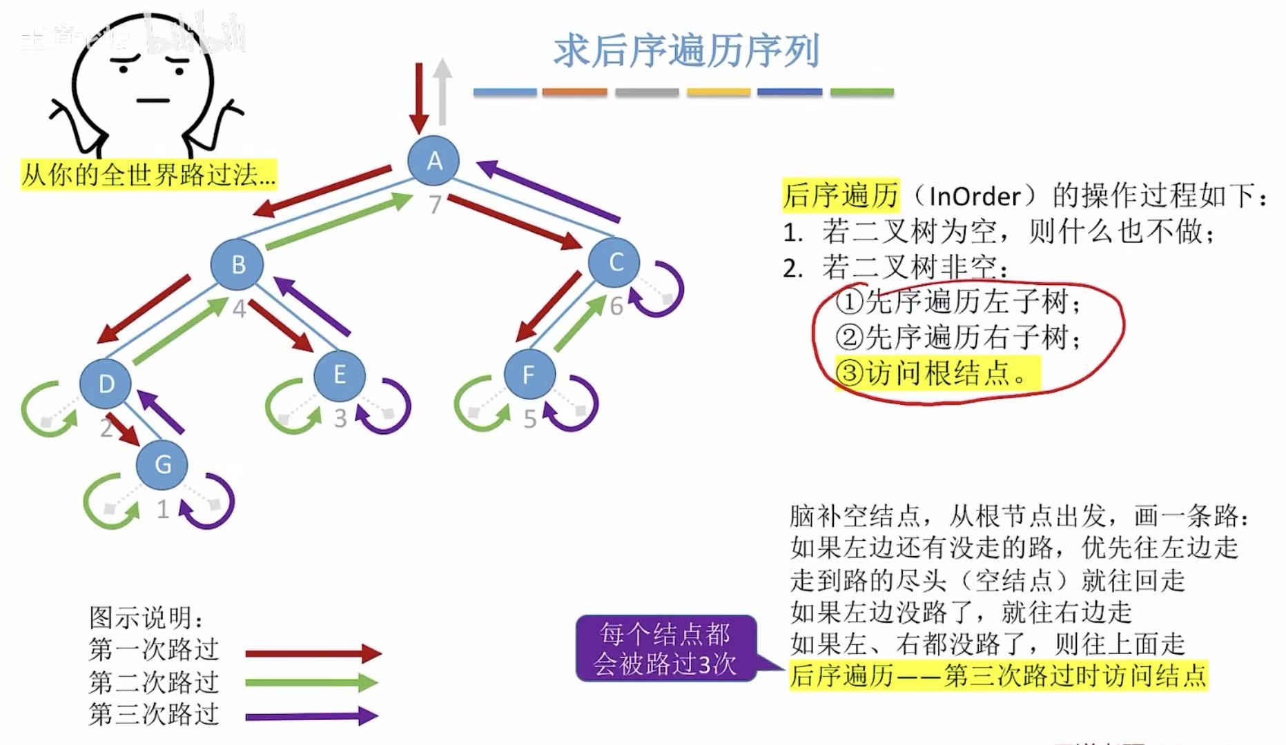 -->返回D-->返回B-->访问B的右孩子E-->E左-->E右-->返回B-->返回A-->...