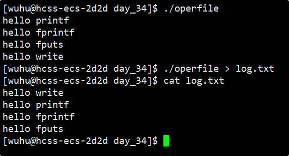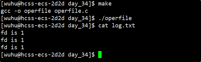 现在我们要进行程序运行测试,如上我们的fputs一共执行3次,打印一次暂停一秒,现在我们要在程序运行的时候,同时观测log1.txt中的内容变化。上面的程序中,我们要输入的内容没有加\n,也就是不会触发行缓冲,但我们最后调用了myclose函数,所以我们观察到的现象应该是最后一下子出现了三条内容。