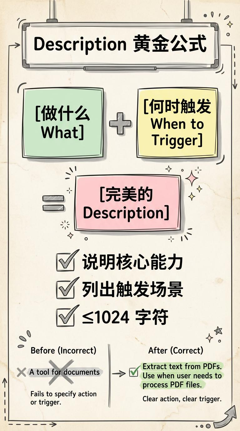 description 决定 Skill 能不能被正确触发,要格外上心。