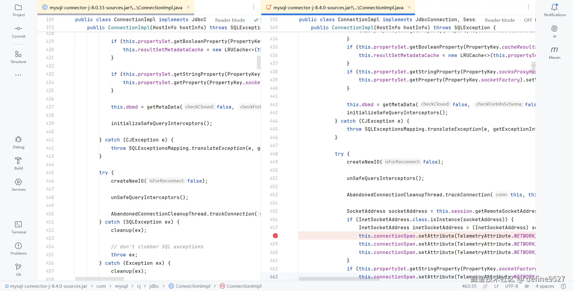 - 翻看 8.0.33 中 ConnectionImpl 的源码,不会调用