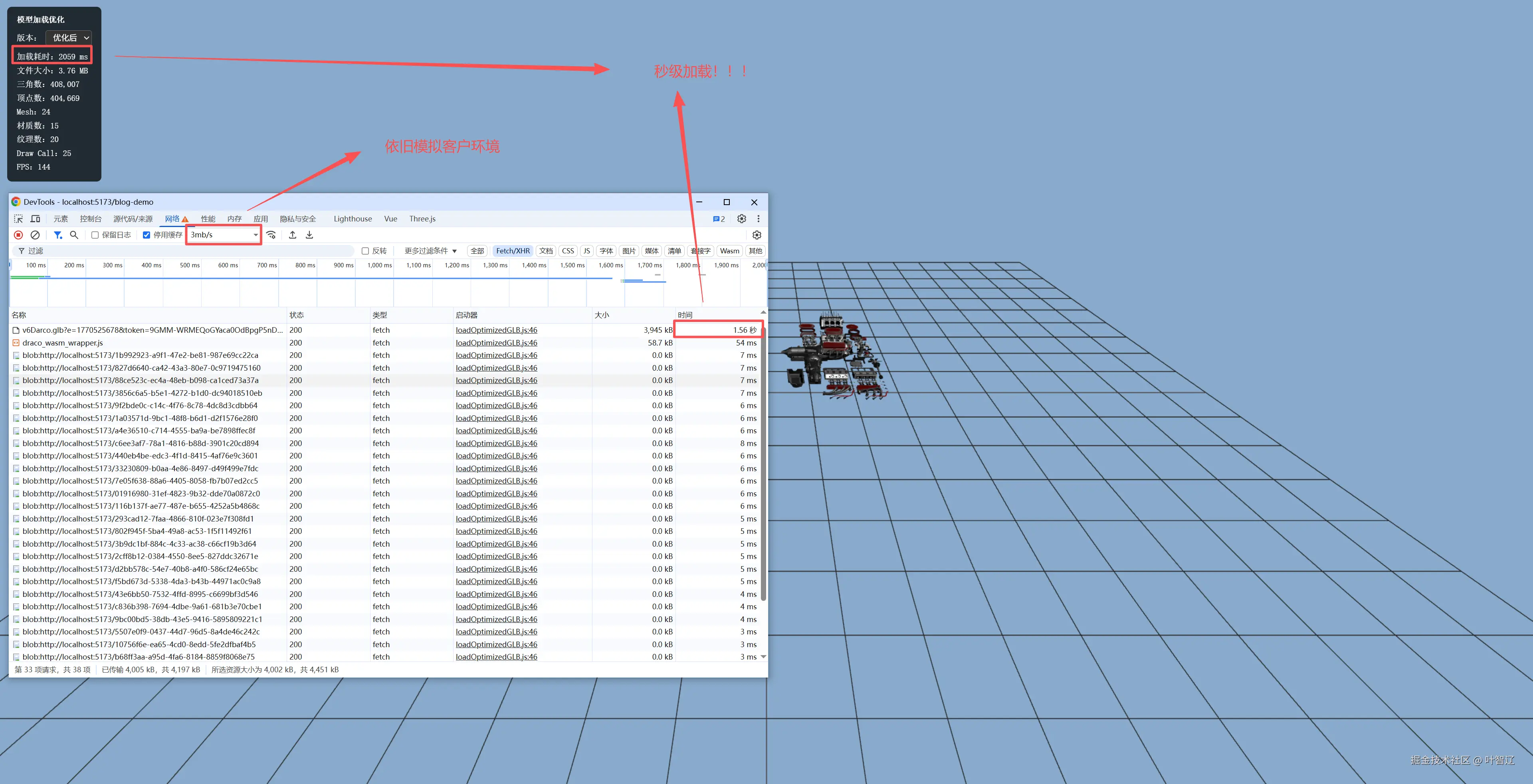 如果你也遇到过这种情况:精心打磨的3D场景,本地运行丝滑流畅,一上线用户骂娘------"破网站卡死了"、"怎么还在转圈"、"手机直接闪退"。别急着怪用户网速慢,先看看你的模型是不是太胖了。
