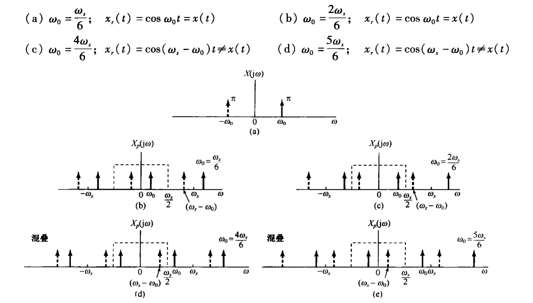 如果f0 > fs/2 , 则采样的信号后 xa(t) =cos(2*pi*f0*nT + ϕ) = cos(2*pi*(fs+(f0-fs))/fs*n + ϕ) = cos(-2*pi*(fs-f0)/fs*n + ϕ) = cos(2*pi*(fs-f0)/fs*n - ϕ)