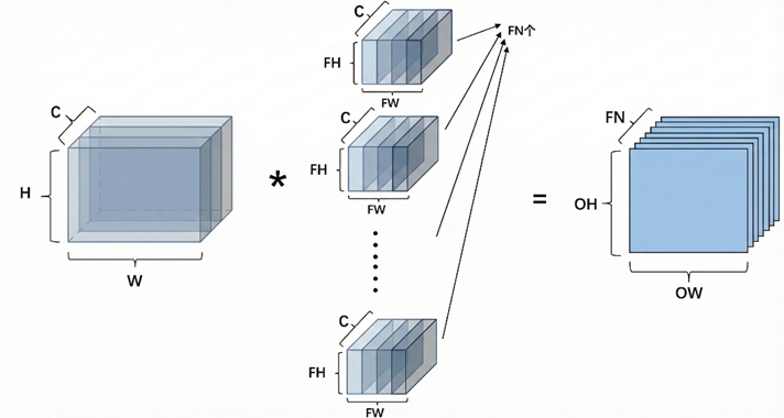 卷积层同样包含偏置项 𝑏。输入特征图与卷积核进行卷积运算后,加上偏置,再通过激活函数,得到最终的输出特征图。