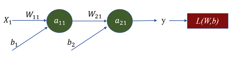 学习率 𝜂表示更新步长,梯度通过链导法则计算,如对下图所示网络: