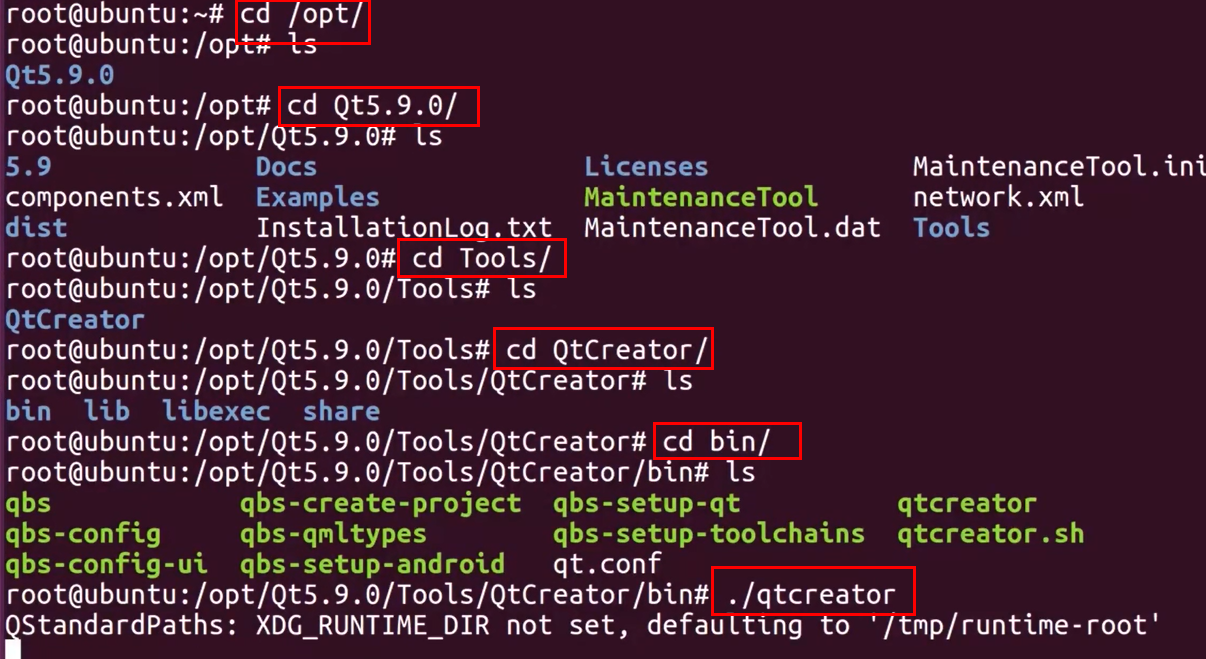 cd进入QtCreator目录,执行qtcreator;