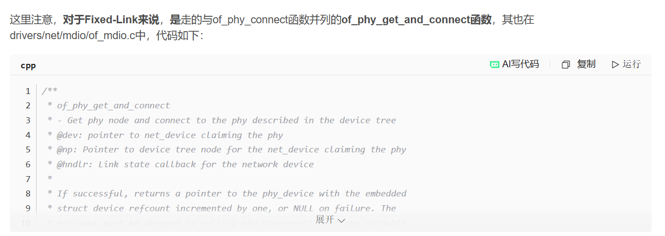 of_phy_is_fixed_link函数返回false,也就是在DTS文件中没有找到Fixed-Link相关结点时,则走else分支。代码片段如下: