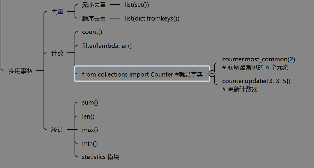 | 保持顺序去重 | list(dict.fromkeys(lst)) |