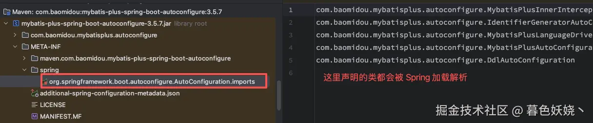 上面我们知道 SpringBoot 启动后会先执行 ConfigurationClassPostProcessor 加载自动配置类,于是加载到了 MybatisPlusAutoConfiguration,它有一个静态内部类