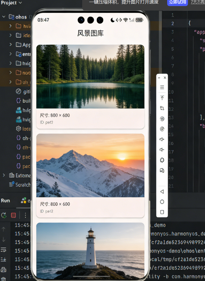 本项目将打造一个功能完整的风景图库应用,实现以下核心功能目标,且所有功能均在DevEco Studio模拟器中验证通过: