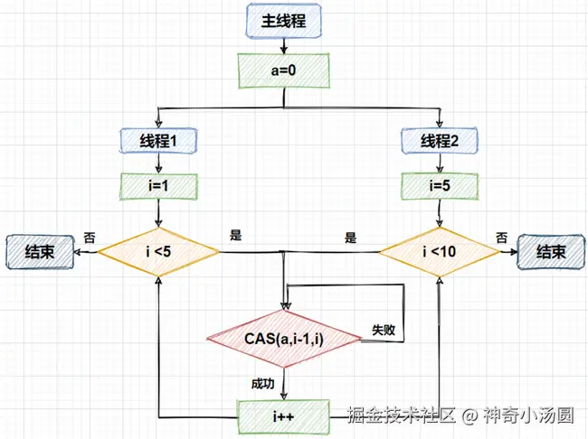 cmpxchg(void* ptr, int old, int new),如果ptr和old的值一样,则把new写到ptr内存,否则返回ptr的值,整个操作是原子的。在Intel平台下,会用lock cmpxchg来实现,使用lock触发缓存锁,这样另一个线程想访问ptr的内存,就会被block住。