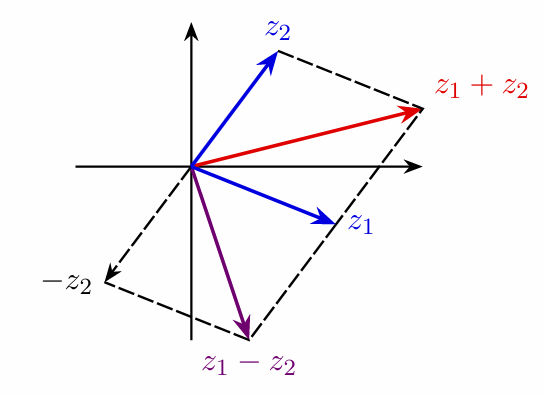 z 1 + z 2 = ( x 1 + x 2 ) + ( y 1 + y 2 ) i z 1 − z 2 = ( x 1 − x 2 ) + ( y 1 − y 2 ) i z_1 + z_2 = (x_1 + x_2) + (y_1 + y_2)i\\ z_1 - z_2 = (x_1 - x_2) + (y_1 - y_2)i z1+z2=(x1+x2)+(y1+y2)iz1−z2=(x1−x2)+(y1−y2)i