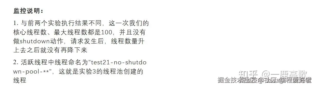 这里再把实验3会导致系统的出现的问题总结一下。通过2.3.2中的实验3监控图以及源码,我们可以看到,线程池使用完,未及时进行shutdown,就最差的情况来说,会导致的问题: