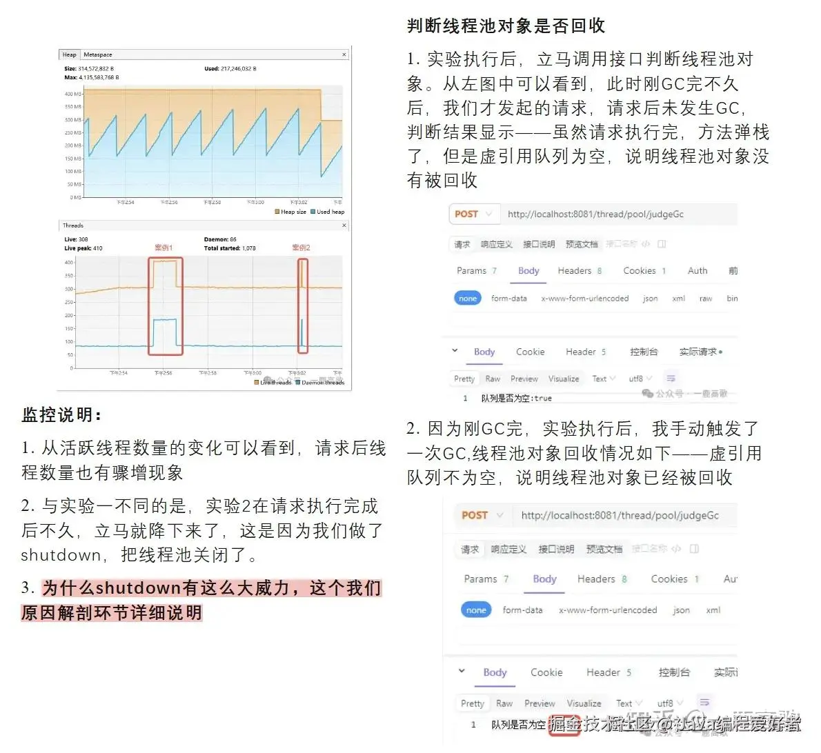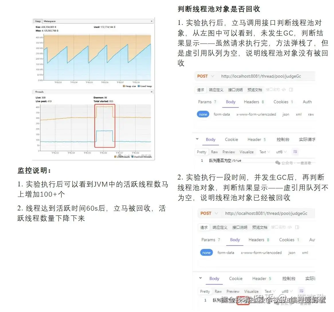 每个实验执行完后,分别执行一次2.2.1 判断线程池对象是否回收