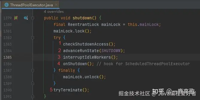 首先看下ThreadPoolExecutor#shutdown方法