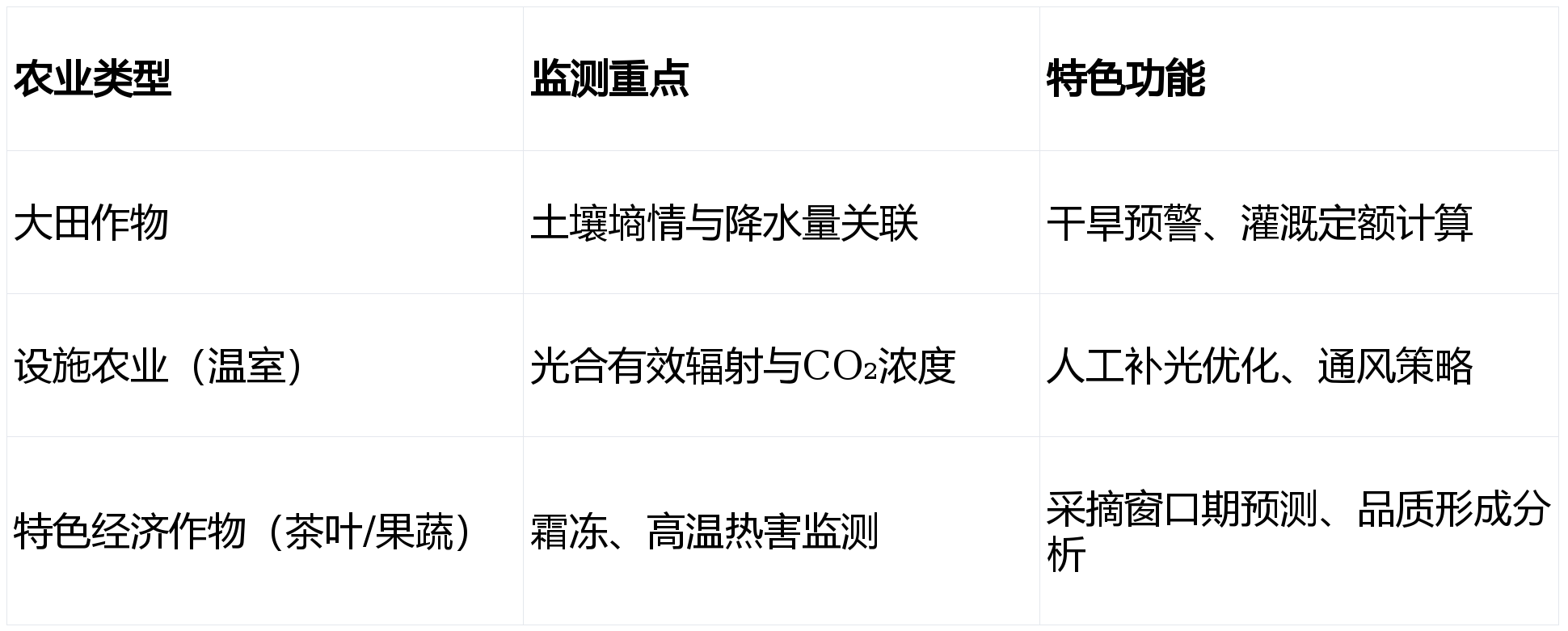 - 感知层:LPWAN连接的田间气象站(土壤墒情、冠层温度、PAR)