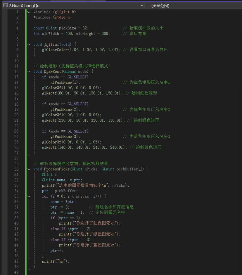 3.掌握对选择缓冲区数据的解析方法,实现拾取结果的识别与反馈。