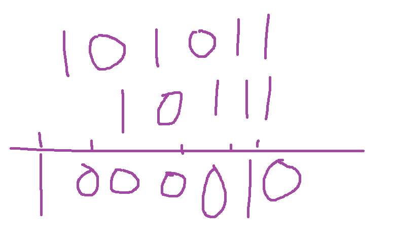 解法:模拟列竖式计算(两个1的话就要向上进了,并且第一个不能是0,必须是1)