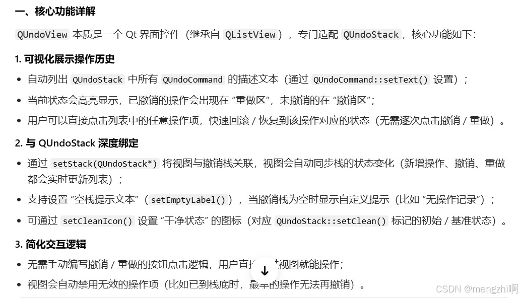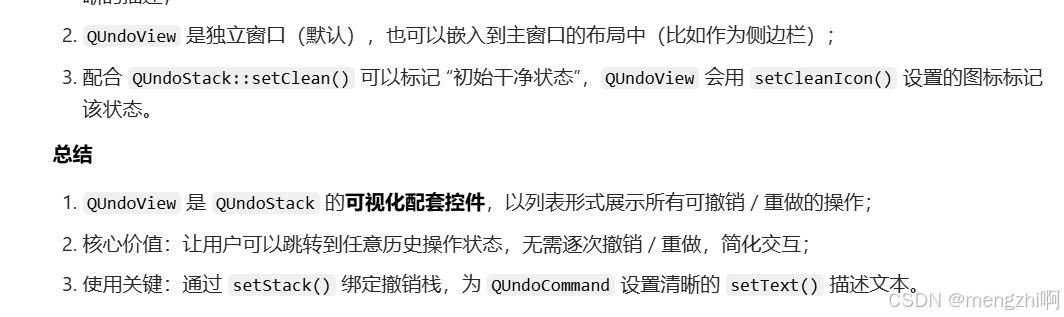 QUndoView 本质是一个 Qt 界面控件(继承自 QListView),专门适配 QUndoStack