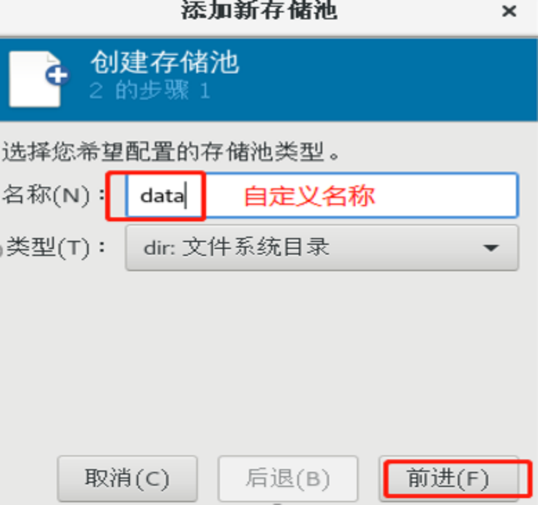 1.2、创建文件系统存储池(data->放虚拟机磁盘镜像)