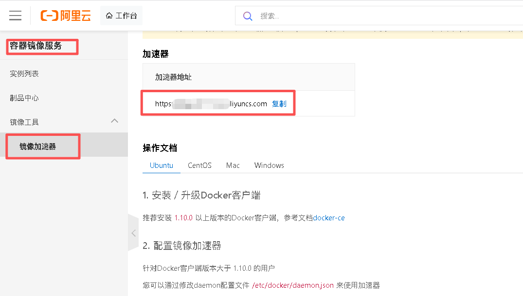 - 方法:使用阿里云镜像加速器,替换docker默认的官方镜像站https://registry-1.docker.io