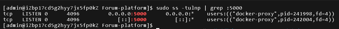 表面原因:5000 端口被占用,Bind for 0.0.0.0:5000 failed: port is already allocated