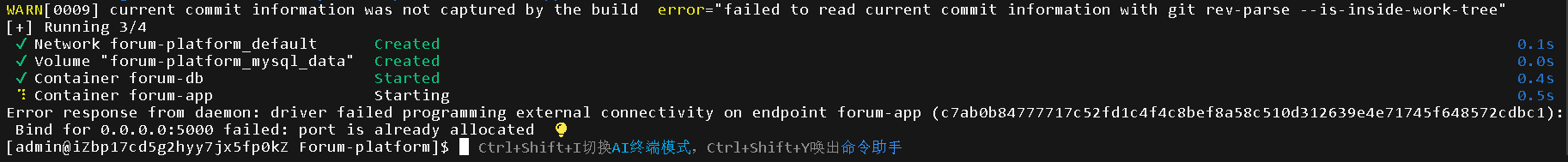 Error response from daemon: driver failed programming external connectivity on endpoint forum-app (...):