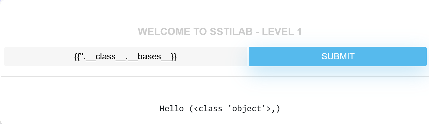 那就来吧,手工打{{''.class.bases}}