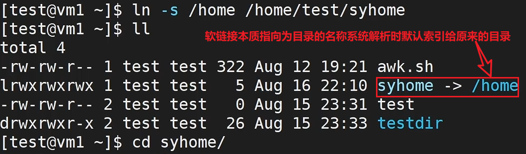 软链接本质指向为目录的名称系统解析时默认索引给原来的目录