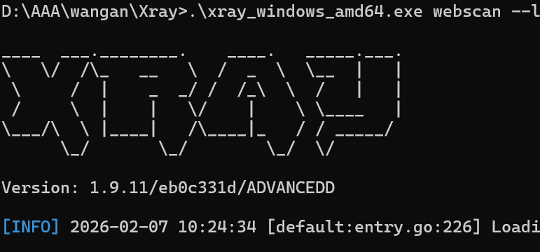 .\xray_windows_amd64.exe webscan --listen 127.0.0.1:7777 --html-output report.html(注:如果你的文件名不一样,请修改前面的