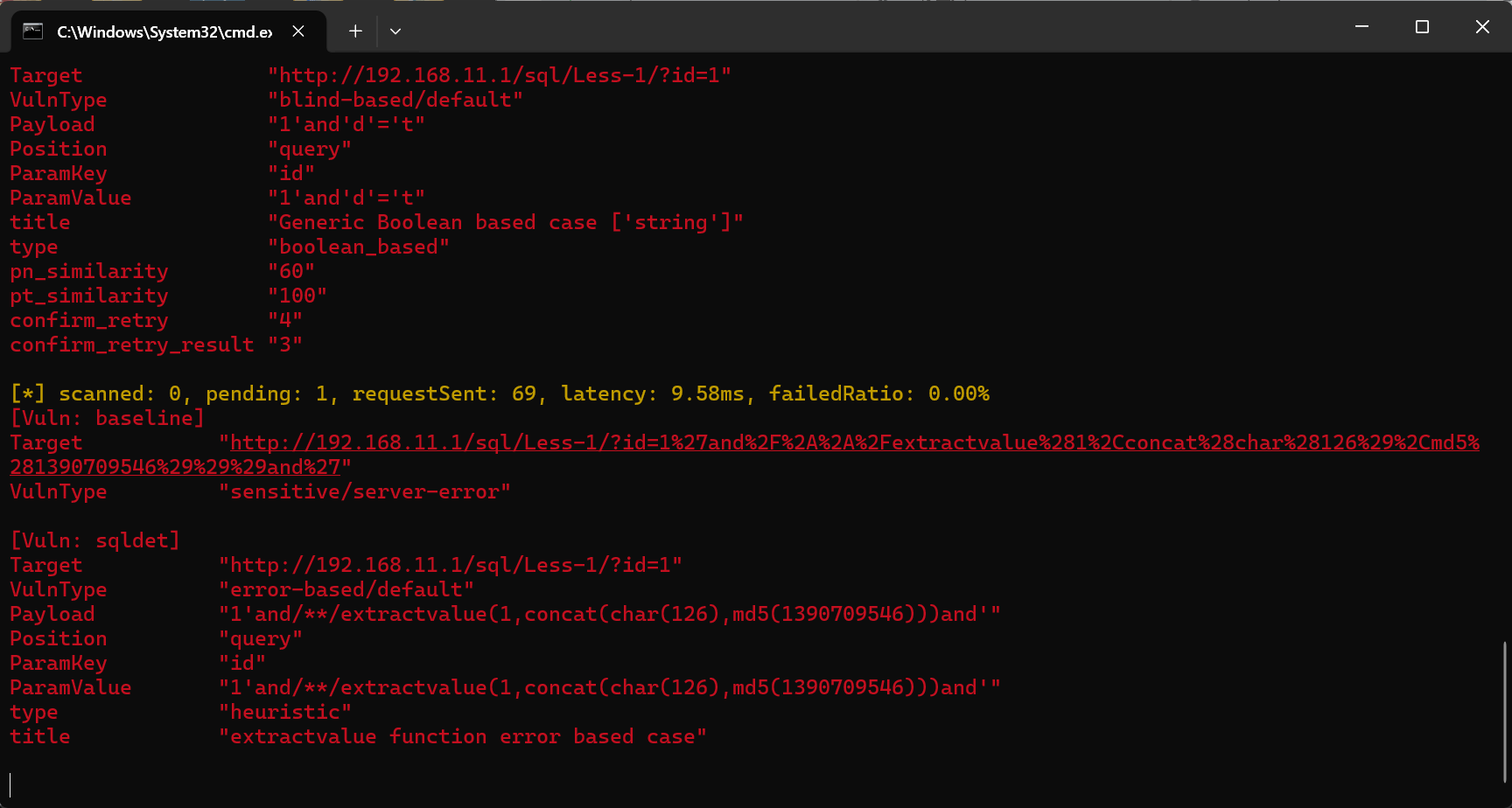 .\xray_windows_amd64.exe webscan --listen 127.0.0.1:7777 --html-output sql_report.html --plugins sqldet