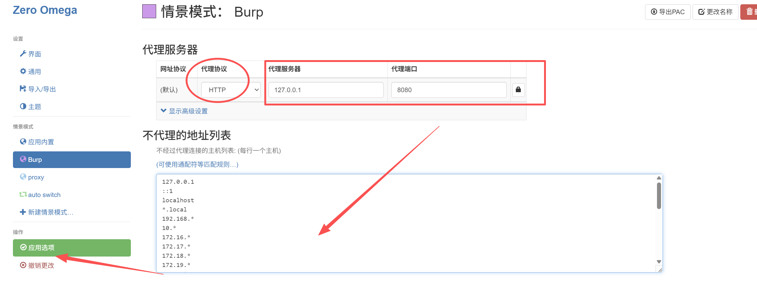 我们需要告诉浏览器:"别直接上网,先把数据发给 127.0.0.1:8080 (Burp 的地址)"。