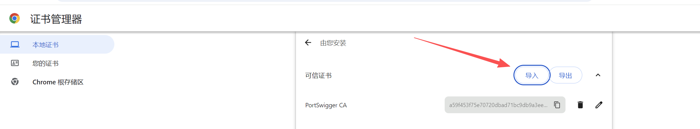- 原因:通常是因为导入证书时,没有选对 "受信任的根证书颁发机构" 那个选项卡,而是导入到了"个人"里。