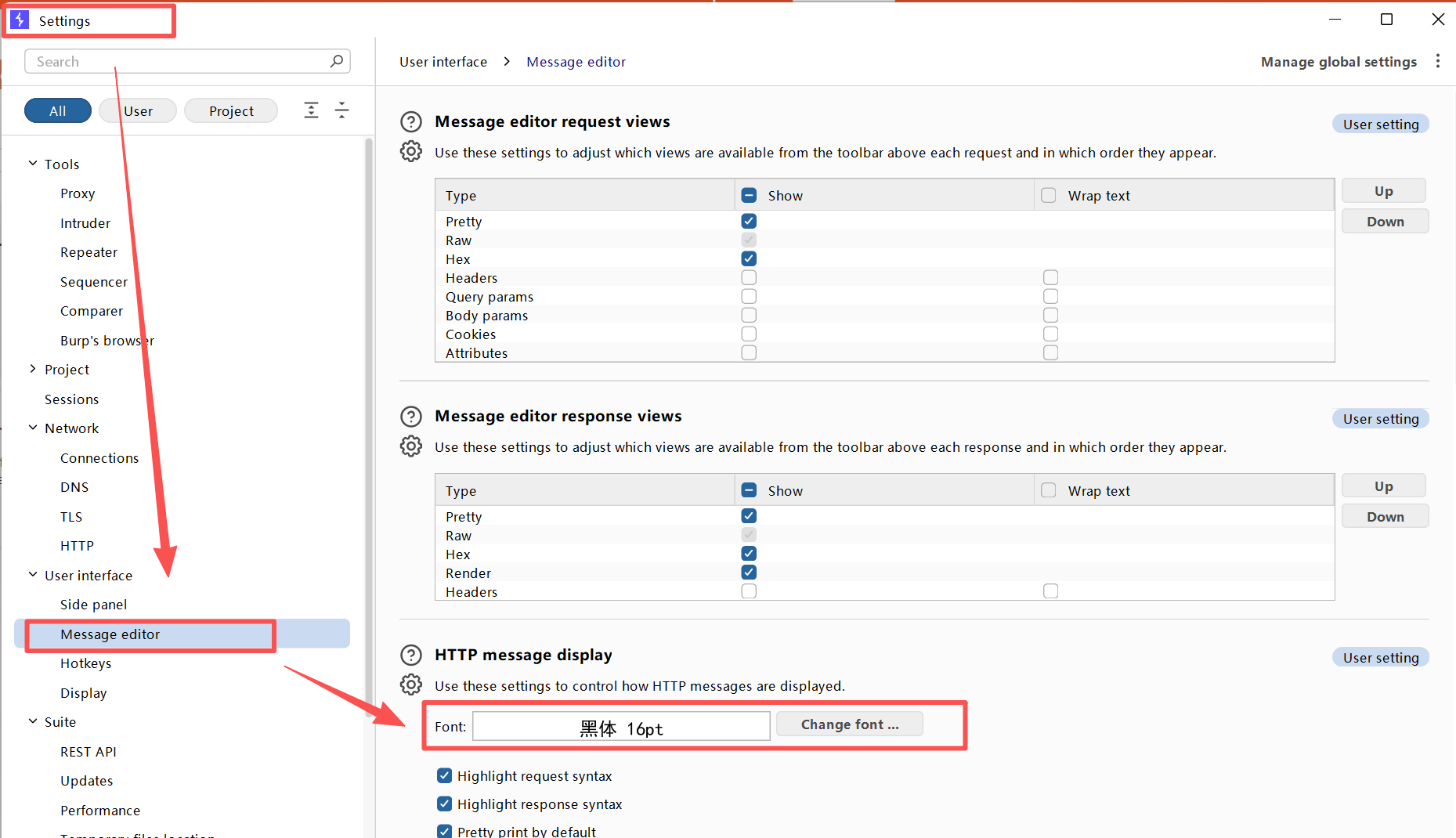 打开 Burp,进入 Settings (旧版是 User Options)。
