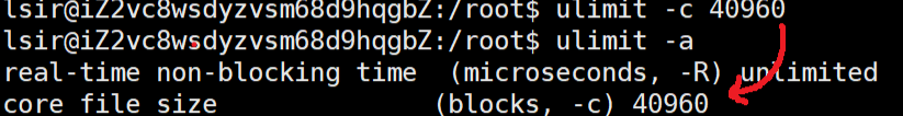 假如设置core文件最大为40MB,输入指令ulimit -c 40960即可