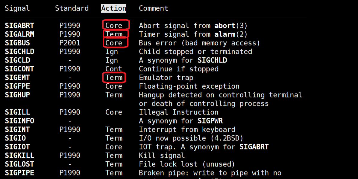 关于信号引起的程序终止,其实分为两种情况,一种终止方式为Core,另一种为Term,那么两种终止有什么区别呢?