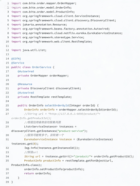 接下来我们修改order-service,在远程调⽤时,从eureka-server拉取product-service的服务信息,实现 服务发现