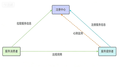 服务注册:服务提供者在启动时,向Registry注册⾃⾝服务,并向Registry定期发送⼼跳汇报存活状 态.