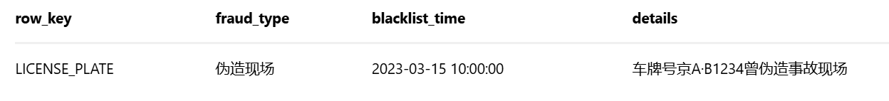 ⑤ 反欺诈黑名单库(fraud_blacklist,HBase表)