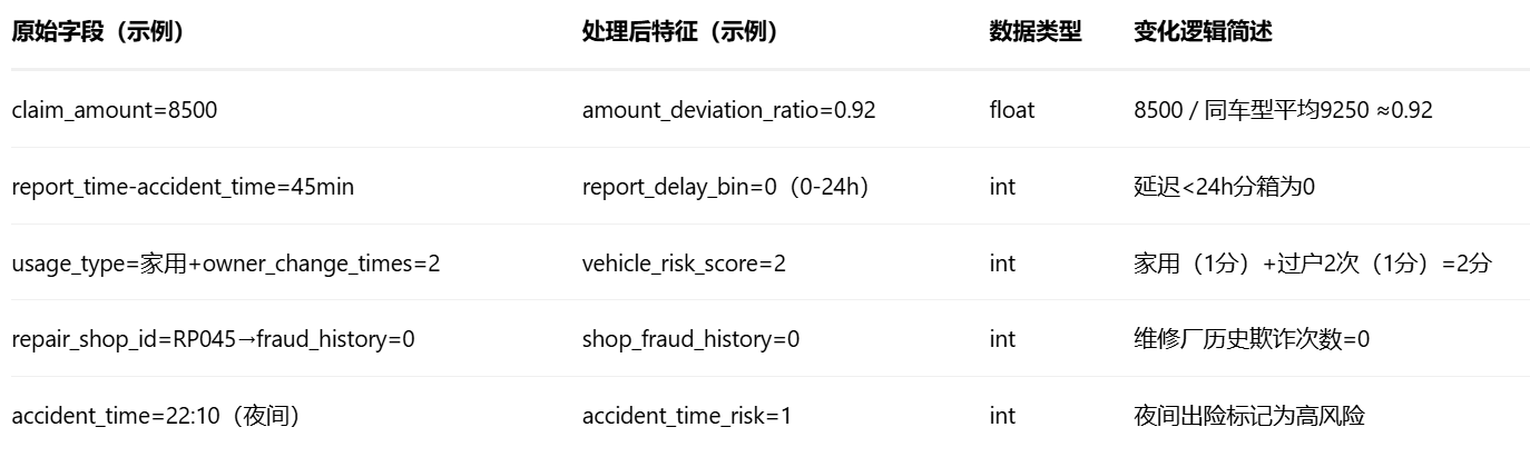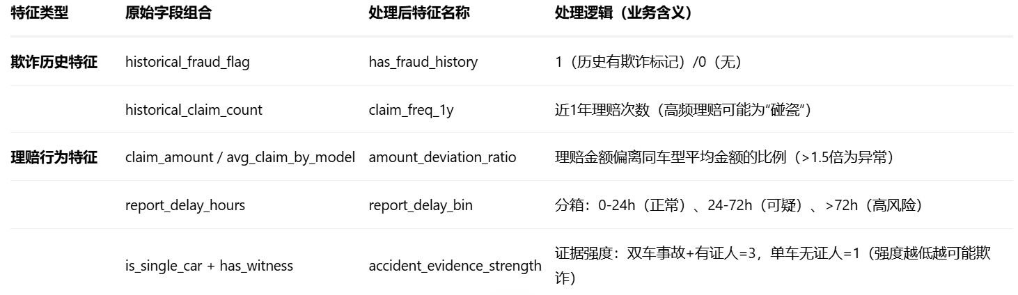# (注:部分特征需业务系统实时计算,如夜间出险标记)