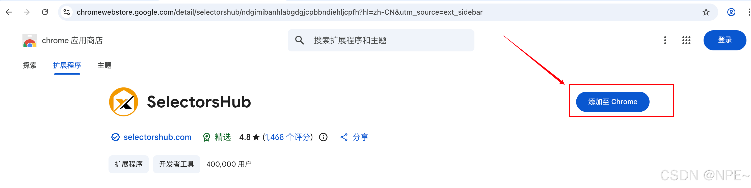 - Chrome应用商店安装SelectorsHub插件