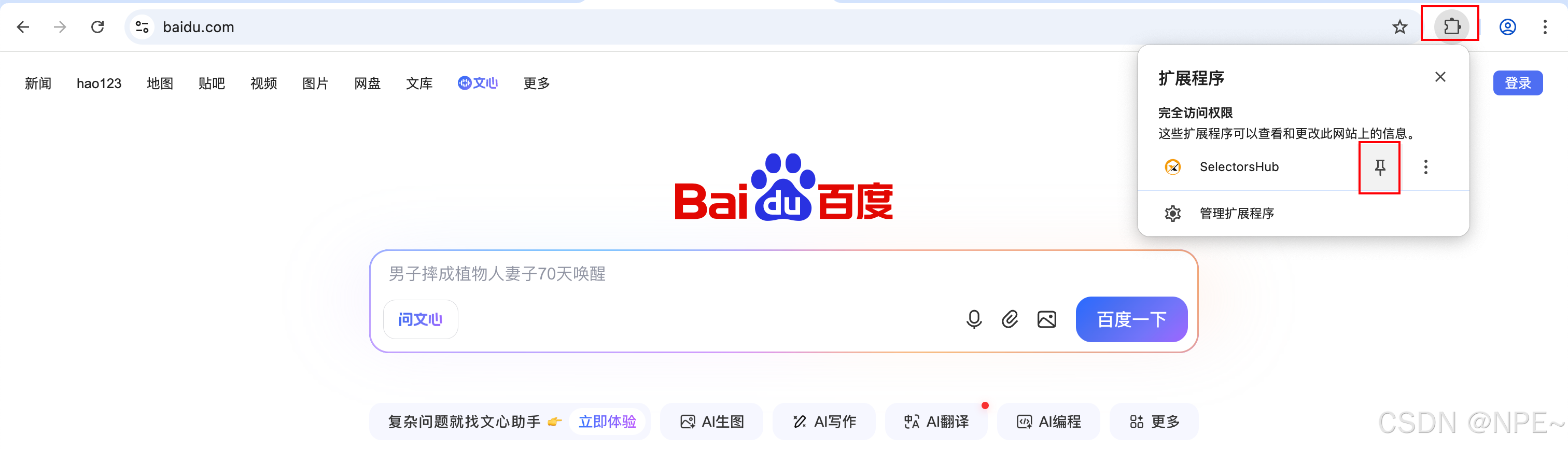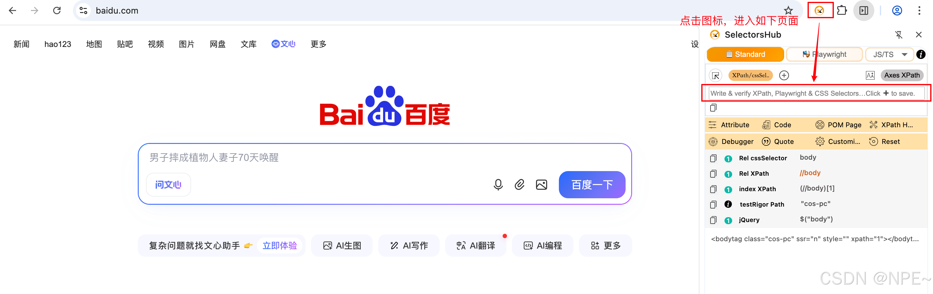 - 打开任意网站后,鼠标点击插件图标,进入搜索框