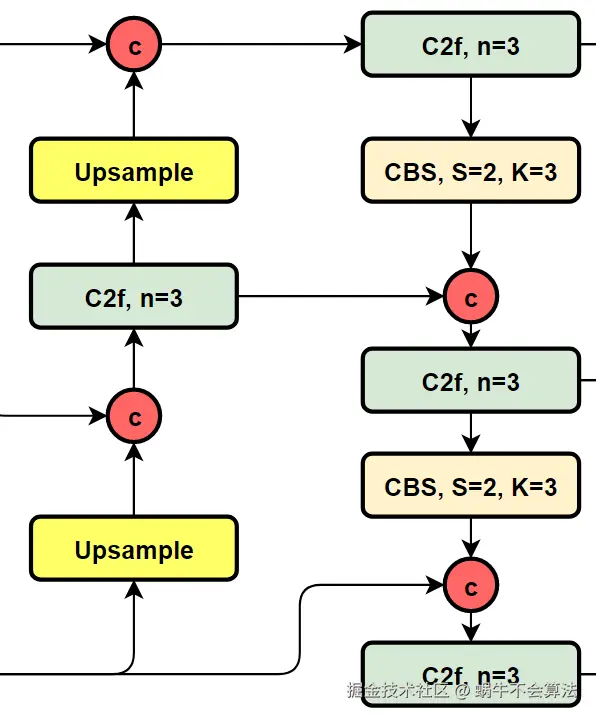Neck部分负责多尺度特征融合,通过将来自Backbone不同阶段的特征图进行融合,增强特征表示能力。具体来说,YOLOv8的Neck部分包括以下组件: