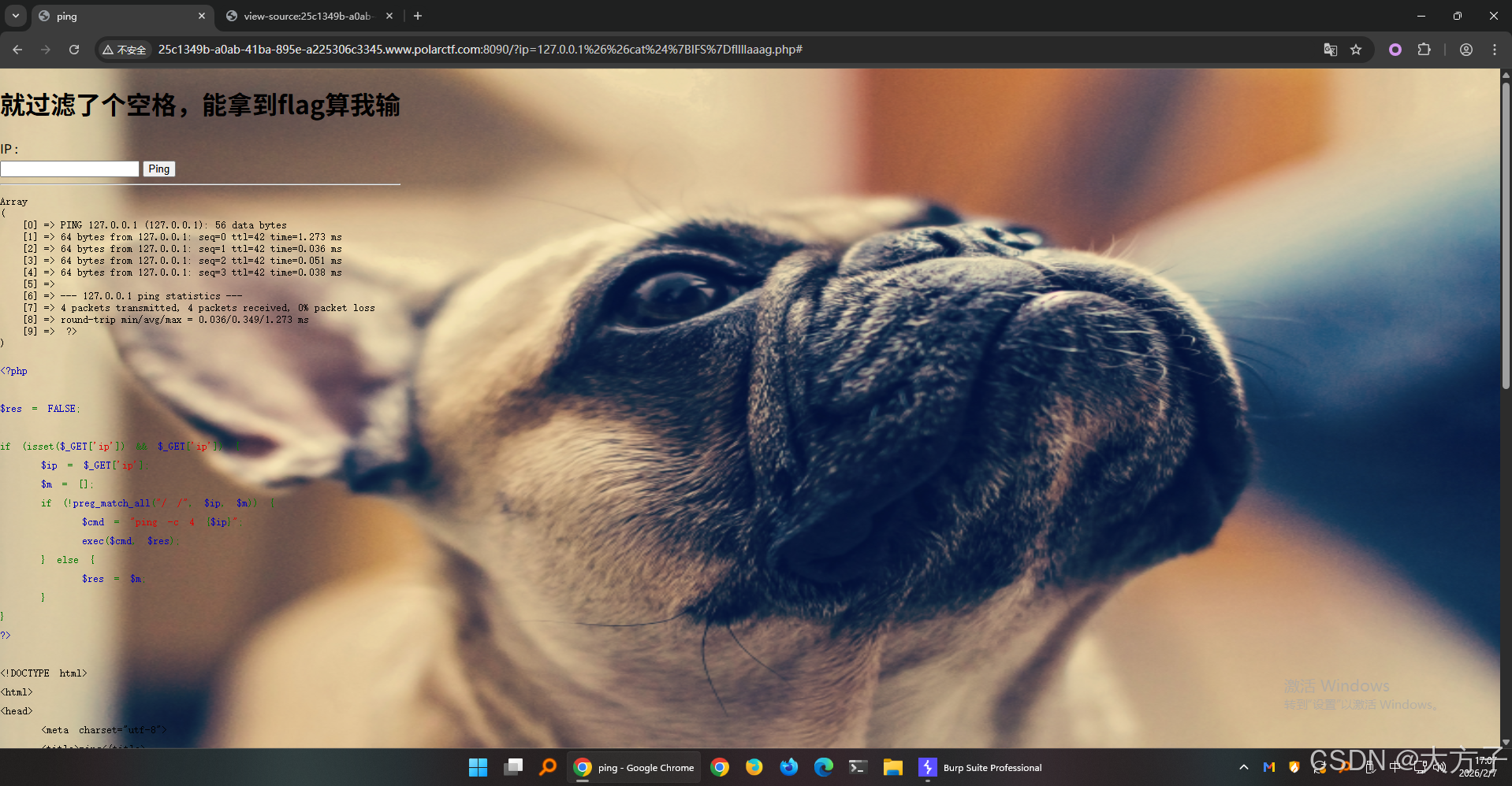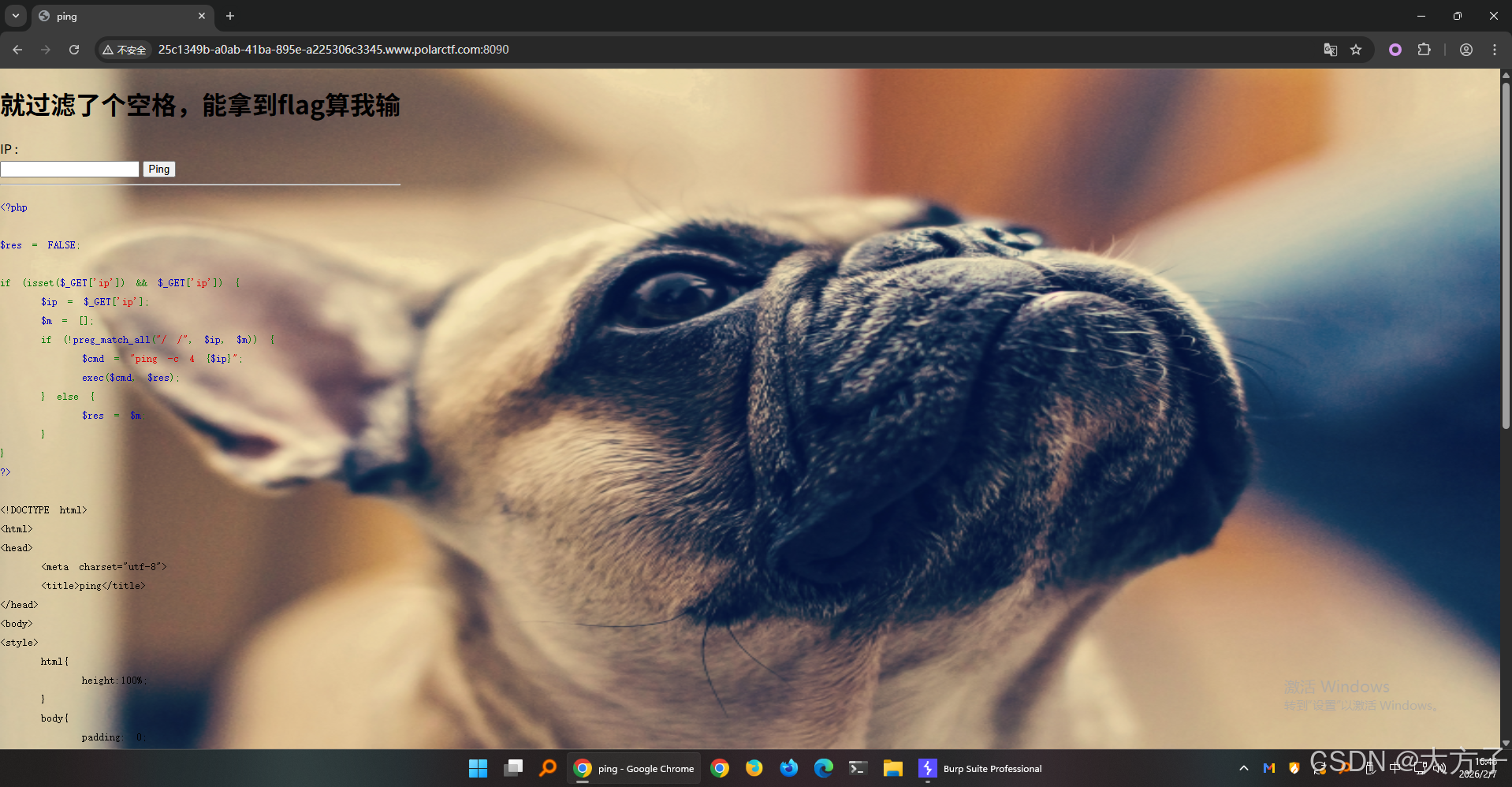 这里作者耍了个小心机,页面显示的是?,实际flag要在网页源代码中才能看到