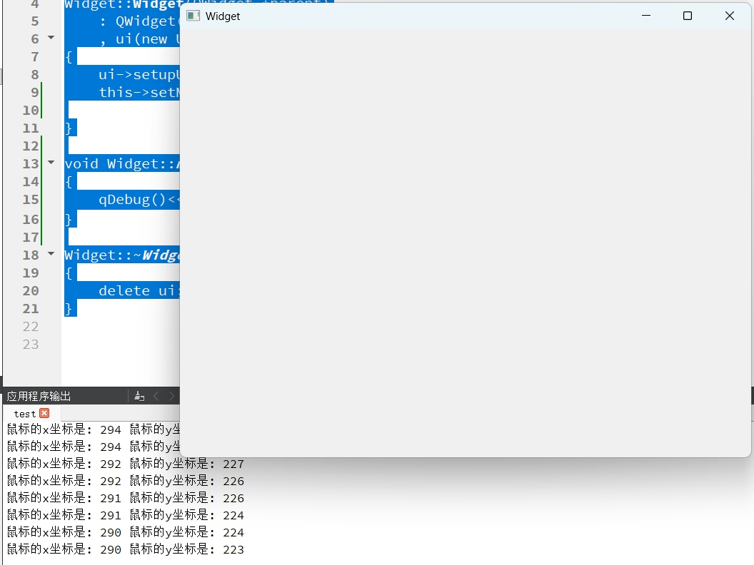 qDebug()<<"鼠标的x坐标是:"<<event->x()<<"鼠标的y坐标是:"<<event->y();