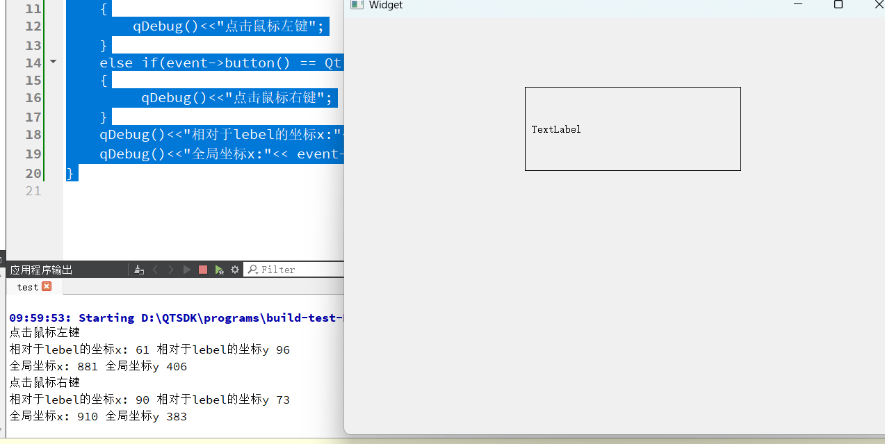 qDebug()<<"相对于lebel的坐标x:"<< event->x() <<"相对于lebel的坐标y"<<event->y();